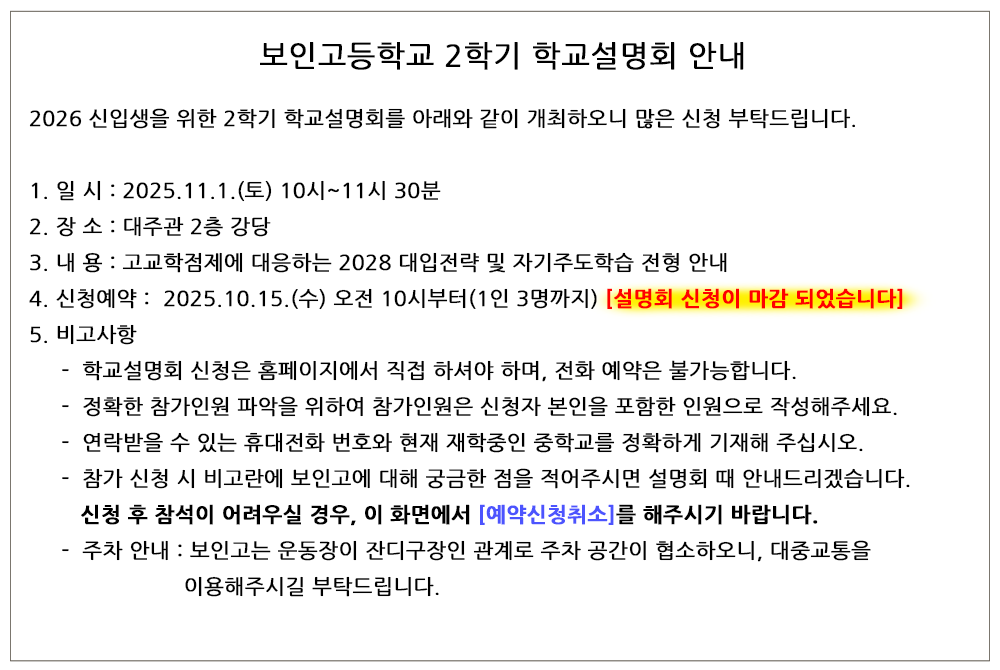 입학설명회 안내