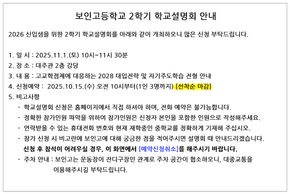 입학설명회 안내